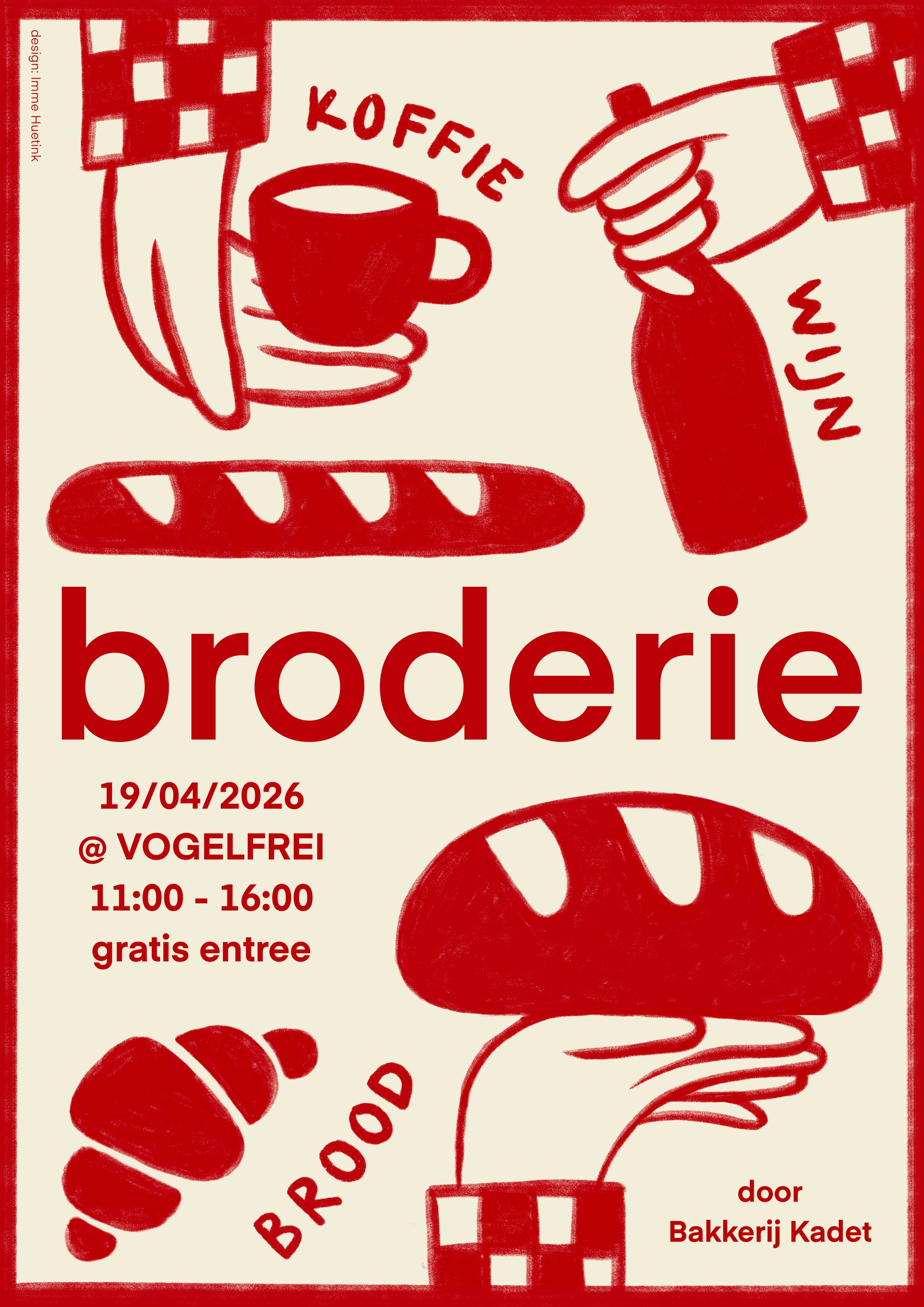 A poster design for Broderie Utrecht, a market for artisan bread wine and coffee.